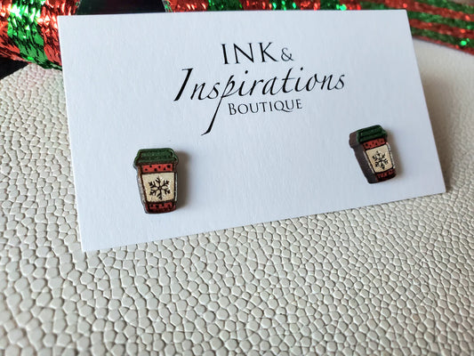 Peppermint Latte Wood Studs and Dangles Winter Earrings