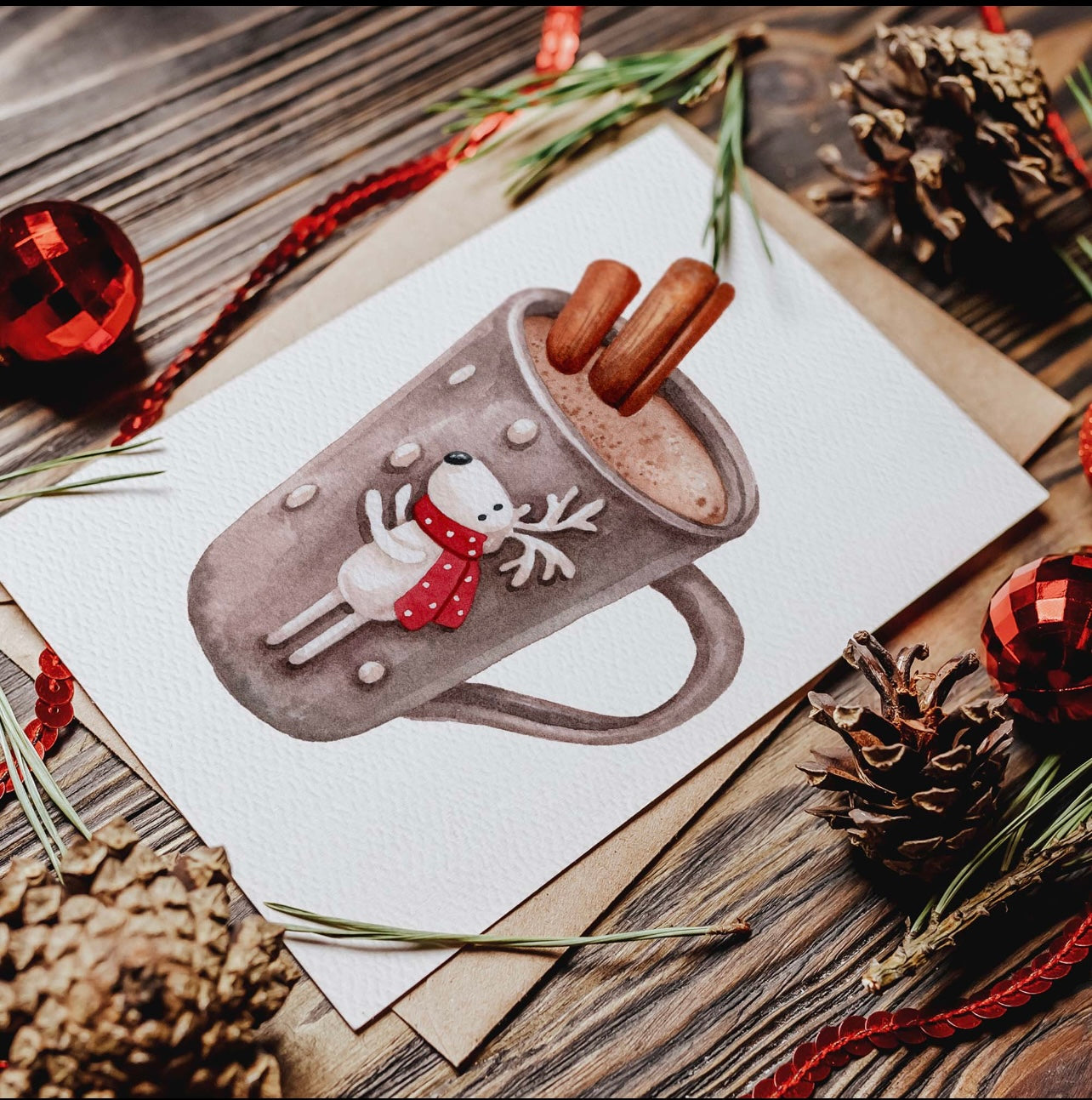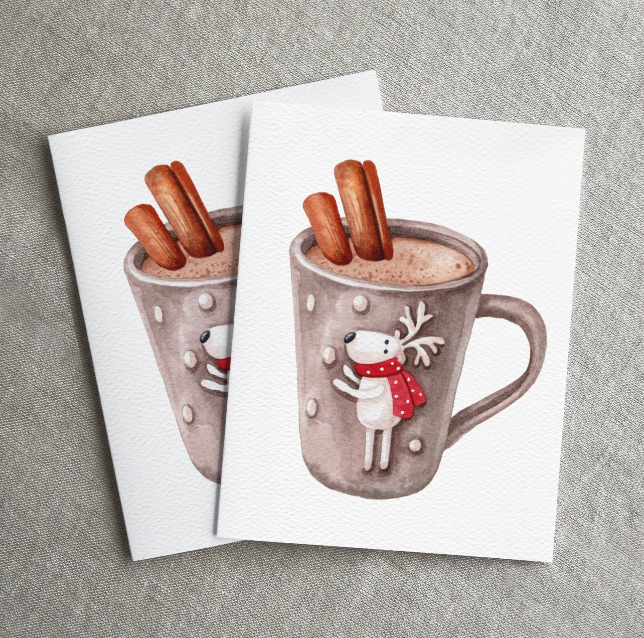 This winter themed card is an elegant and eco-friendly way to say Happy Holidays or Merry Christmas. Each handmade card is printed on recycled paper that has a luxurious and uniquely textured feel. Card features a watercolor illustration of a holiday drink / hot cocoa in a cute reindeer mug. Perfect for gifting on its own, or pairing with a gift (especially hot cocoa!)