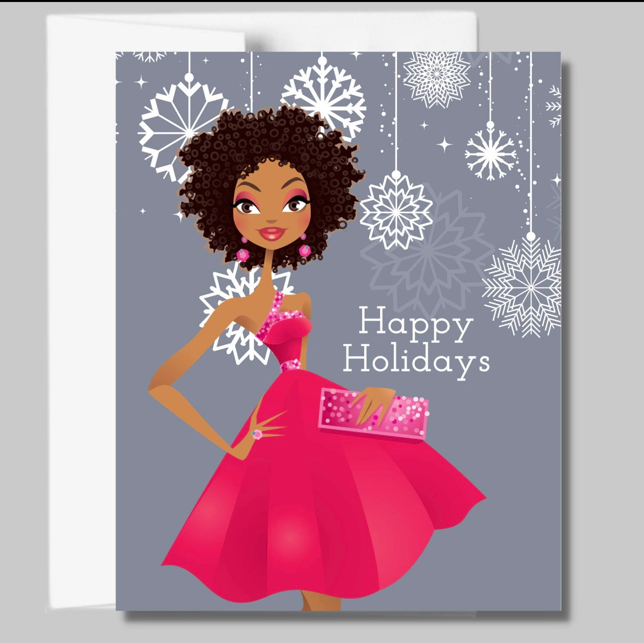 Showcase your black girl magic with this stunning African American Christmas Card featuring a glamorous African American woman rocking her natural curls.