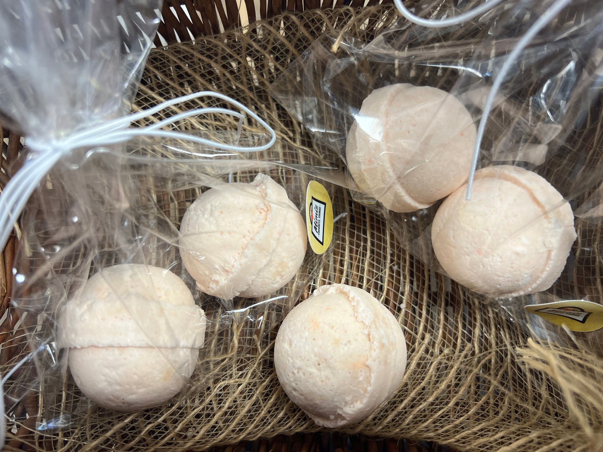 Ingredients: Sodium Bicarbonate, Citric Acid, Almond Oil, Essential and/or Fragrance Oil. May Contain: Episom Salts, Cocoa Butter, Witch Hazel, Isopropyl Alcohol, Natural Colorants, Pigments, Oxides, Micas, Titanium Dioxide.