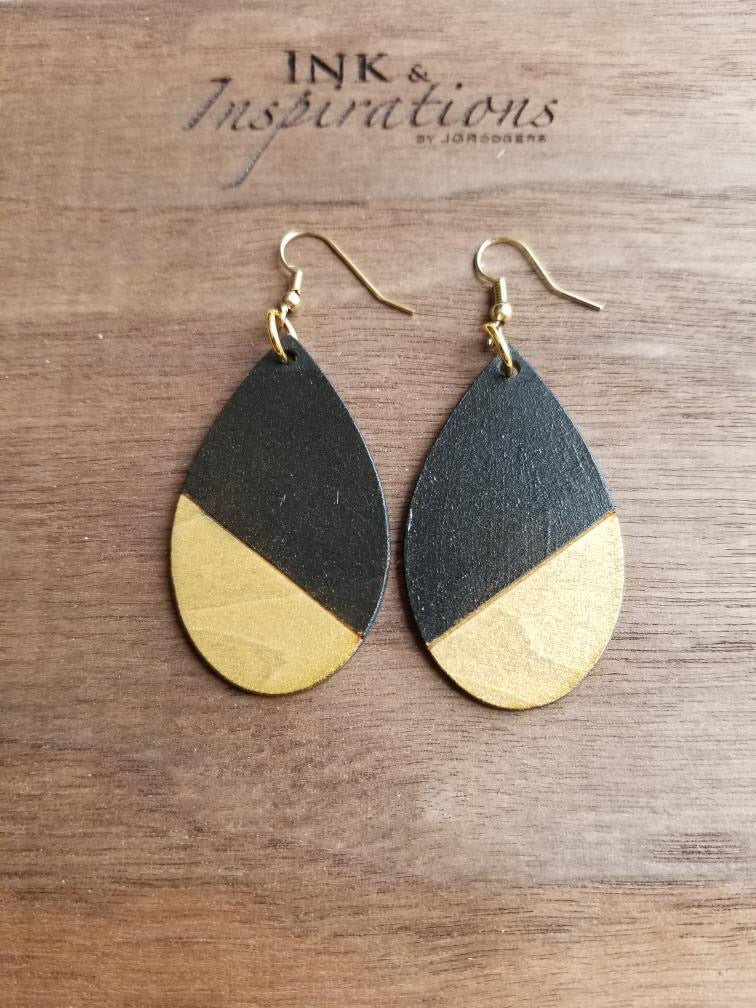 Have you been searching for large wood earrings with a unique modern boho style? These bohemian wood earrings will get tons of compliments. They are a striking combination of gold and black in a beautiful teardrop shape. They are a nice elegant option that are neutral and can be dressed up or down. They are also a Mimis Exclusive that Ink&Inspirations crafted special to match the Mimis Favs brand style.